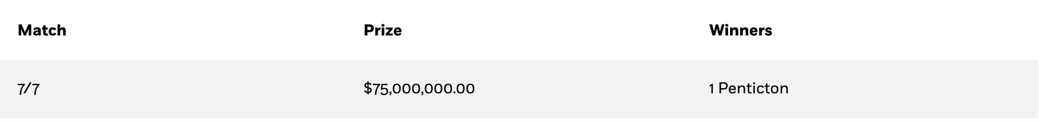 Someone who lives in Penticton or made a stop passing through town is $75 million richer.